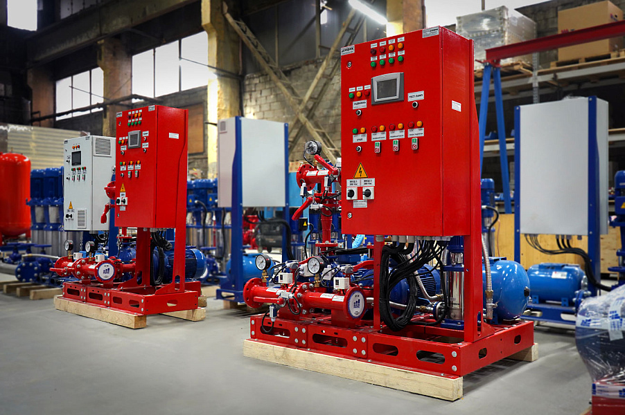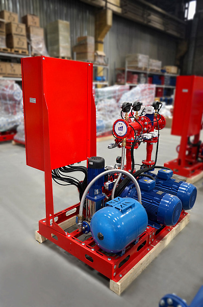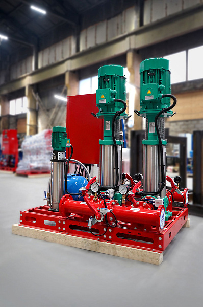 предназначены для обеспечения необходимого давления и объема воды в системе пожаротушения, как в режиме ожидания, так и во время увеличенного потребления воды при тушении возгорания
