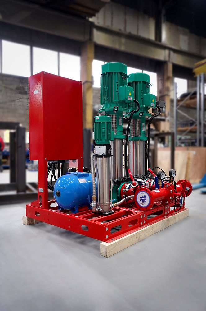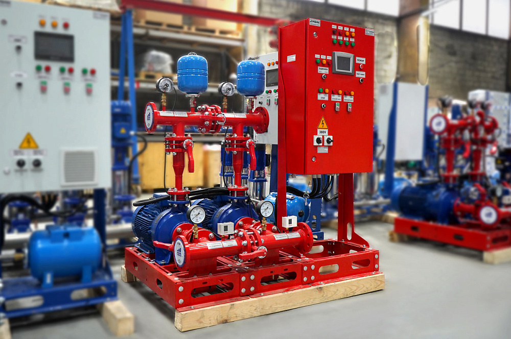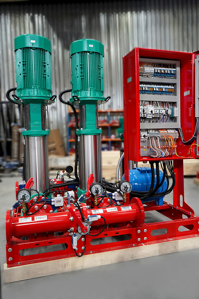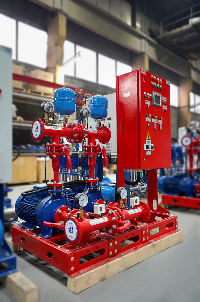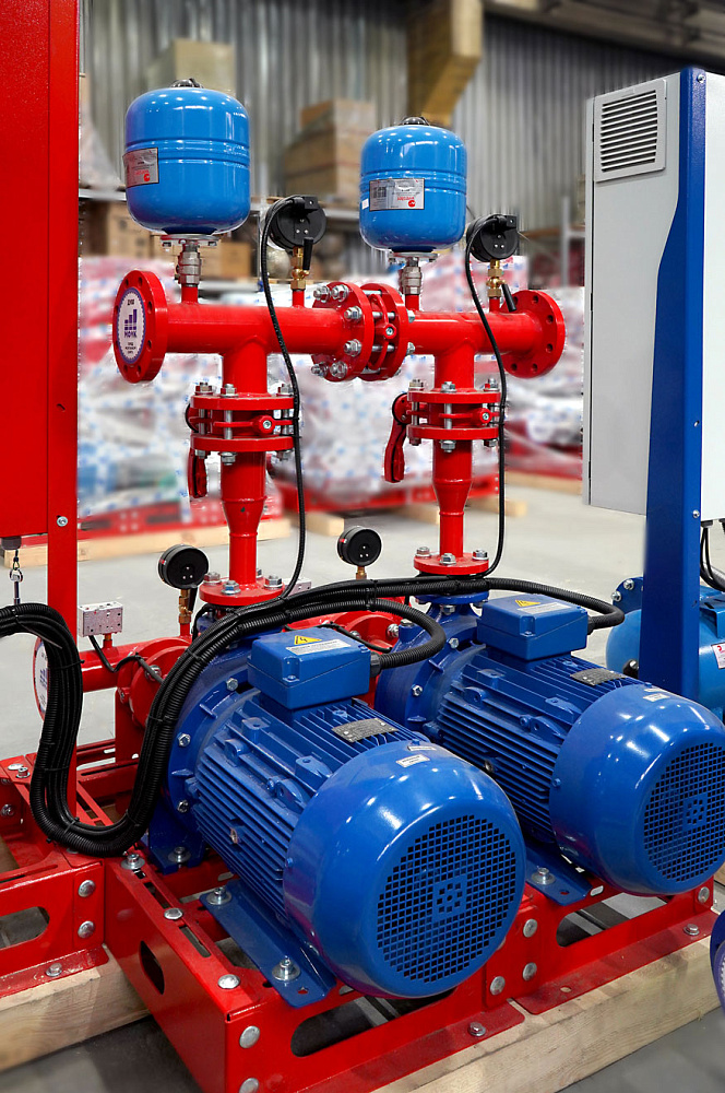 предназначены для обеспечения необходимого давления и объема воды в системе пожаротушения, как в режиме ожидания, так и во время увеличенного потребления воды при тушении возгорания