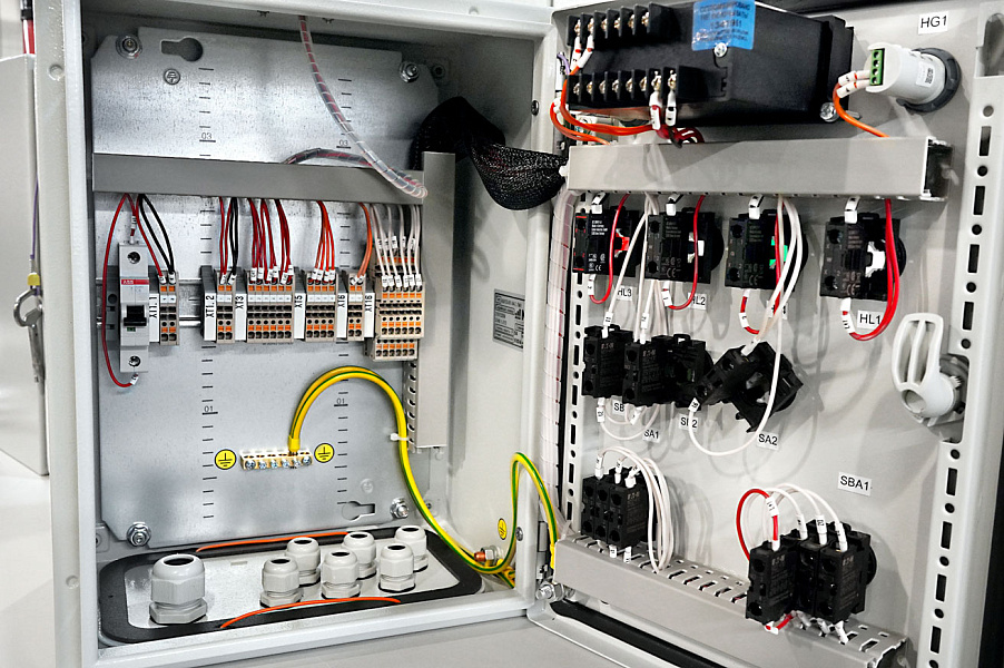 - Индикация режимов работы, отображение основных параметров, а также аварийных состояний шкафа управления