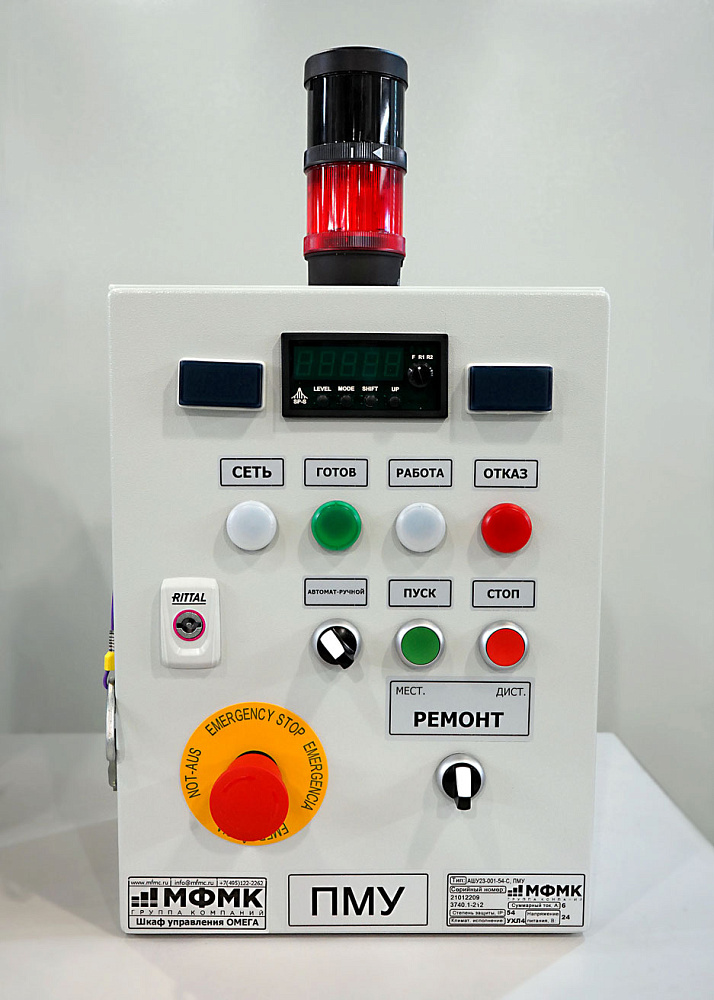 - Индикация режимов работы, отображение основных параметров, а также аварийных состояний шкафа управления