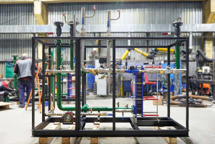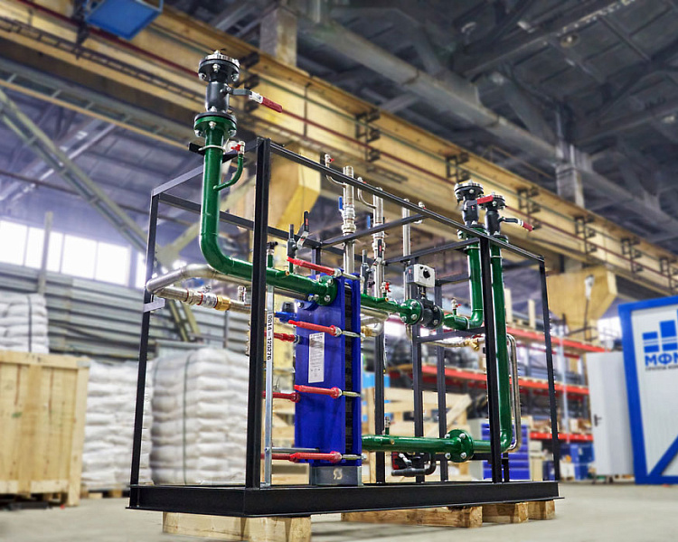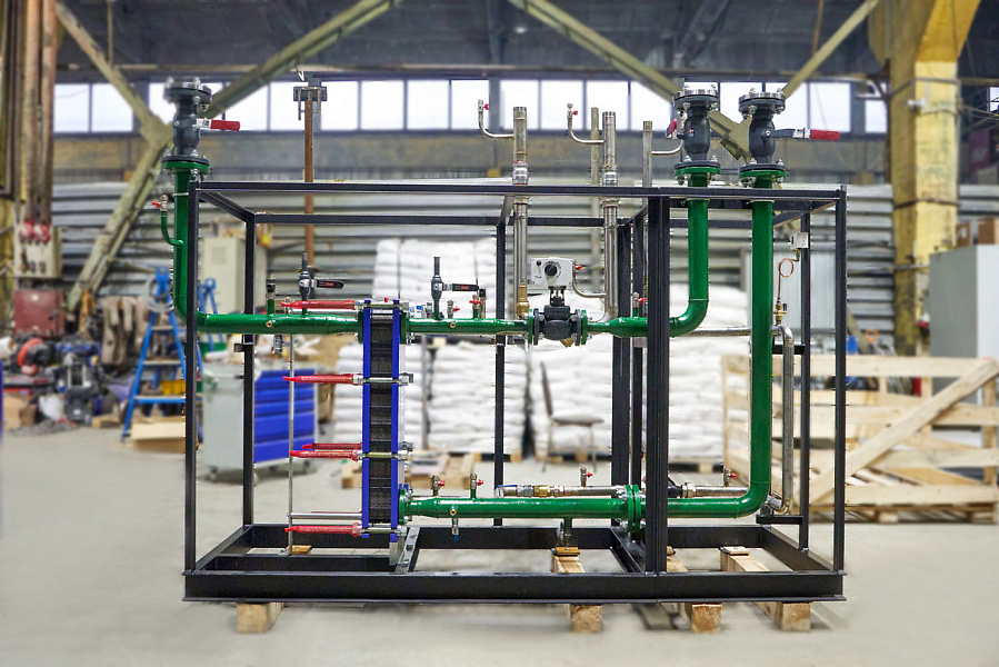 Запорно-регулирующая арматура контролирует потоки жидкости и отвечает за поддержание необходимого давление в системе. Циркуляционные насосы обеспечивают стабильную циркуляцию воды, что приводит к равномерному распределению температуры. Трубопроводная обвязка соединяет все элементы системы. Модуль отвечает за быстрый нагрев и распределение горячей воды. Он снижает энергозатраты благодаря оптимизации работы теплообменного оборудования.