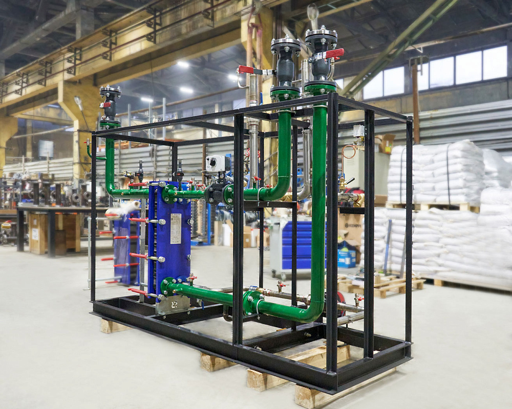 Запорно-регулирующая арматура контролирует потоки жидкости и отвечает за поддержание необходимого давление в системе. Циркуляционные насосы обеспечивают стабильную циркуляцию воды, что приводит к равномерному распределению температуры. Трубопроводная обвязка соединяет все элементы системы. Модуль отвечает за быстрый нагрев и распределение горячей воды. Он снижает энергозатраты благодаря оптимизации работы теплообменного оборудования.