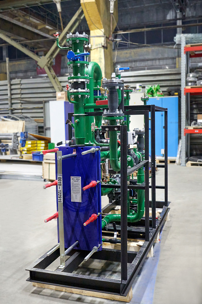 Представляет из себя единую конструкцию на общей раме, состоящую из запорно-регулирующей арматуры, теплообменного оборудования, циркуляционных насосов и трубопроводной обвязки.
