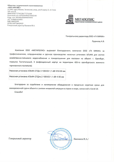 Опросный лист для подбора автоматических установок поддержания давления Альфа Stream® (АУПД)