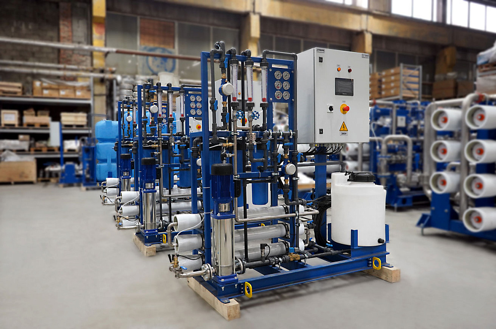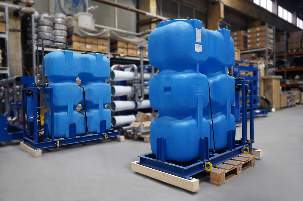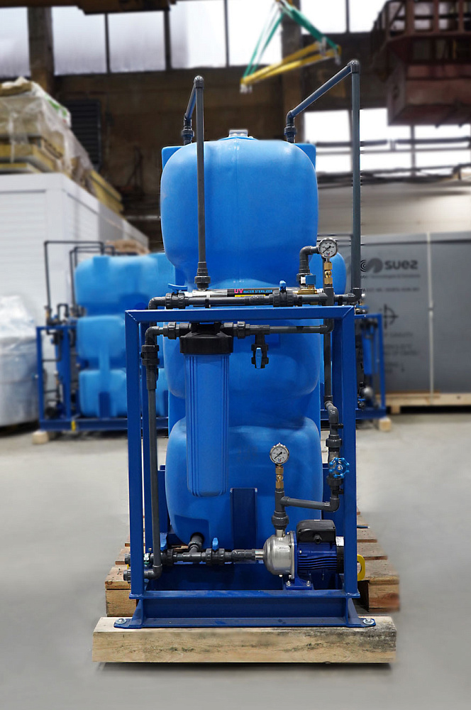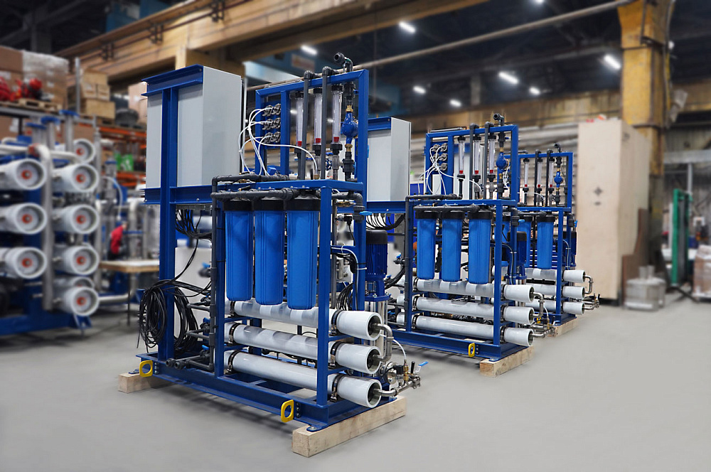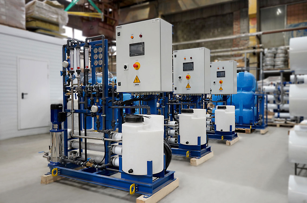 Для получения питьевой воды изготовлены 3 станции обратного осмоса модели Дельта ВПУ Aqua™ ОО с ёмкостями запаса воды, узлами деминерализации и