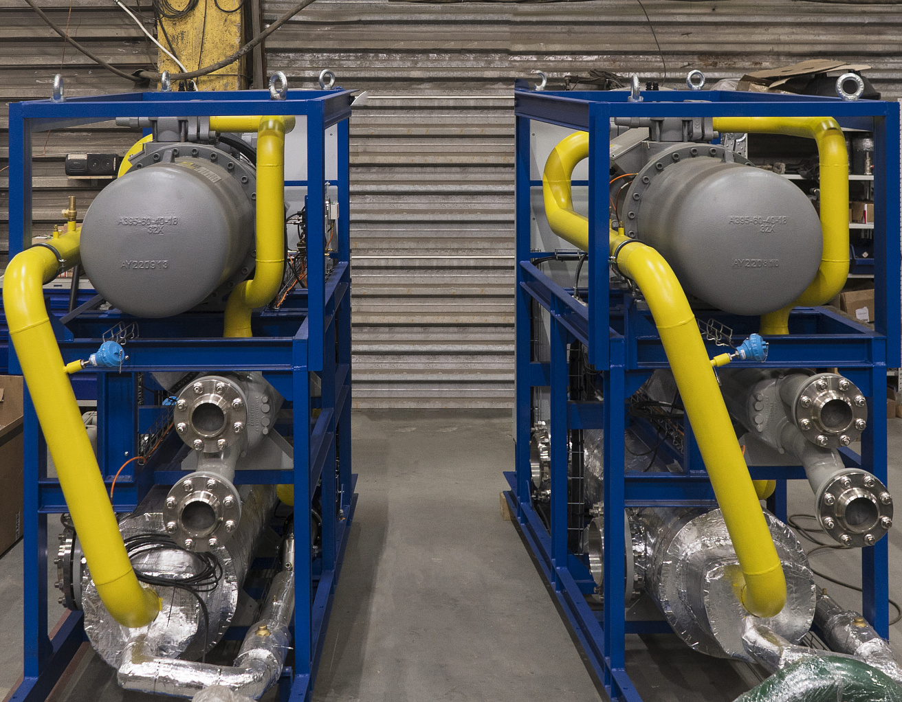 Чиллеры собраны на базе винтовых и спиральных компрессоров FuSheg (Тайвань). На раму каждого чиллера интегрирован шкаф управления с устройством плавного пуска. Холодильные машины на площадку поставляются в полной заводской готовности и заправлены необходимым количеством хладагента.