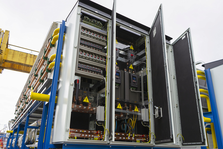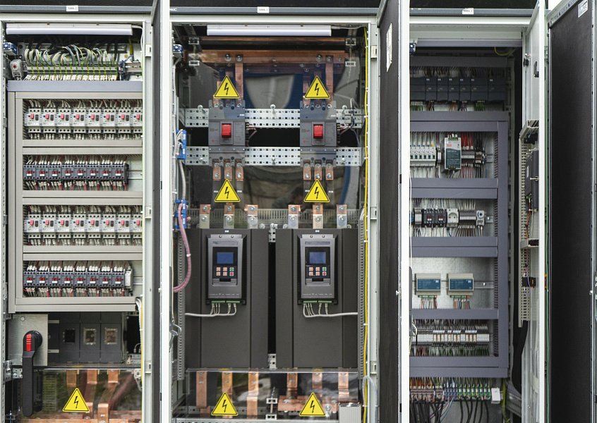 6. Шкаф автоматизации и управления ОМЕГА АШУ40-010-54К. Осуществляет управление всем оборудованием холодильного центра, включая регулирующую арматуру и КИП. Шкафом управления разработан на базе свободно программируемого контроллера Siemens с панелью управления. Интерфейс Ethernet и протокол передачи данных Modbus TCP/IP.