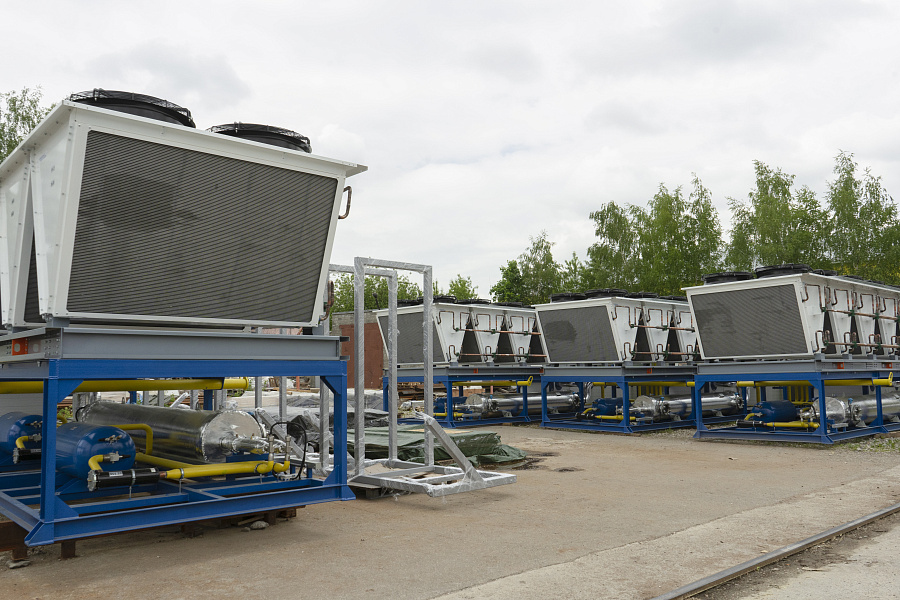 1. Холодильные машины (чиллеры) уличного исполнения Эпсилон Frost МВ 930 КВ - 211/2 - УХЛ1 со шкафом управления и силовыми устройствам в количестве - 4 шт. Холодопроизводительность одного чиллера Q = 934 кВт. Компрессоры винтовые FuSheng (Тайвань) c плавным регулированием производительности и датчиком положения золотника. Шкаф управления на базе контроллера Siemens. Также предусмотрен плавный пуск компрессоров, чтобы снизить нагрузку на сеть Заказчика. Чиллер полной заводской готовности, прошедший испытания, заправлен хладагентом R134a. Производитель ООО «ГК МФМК».