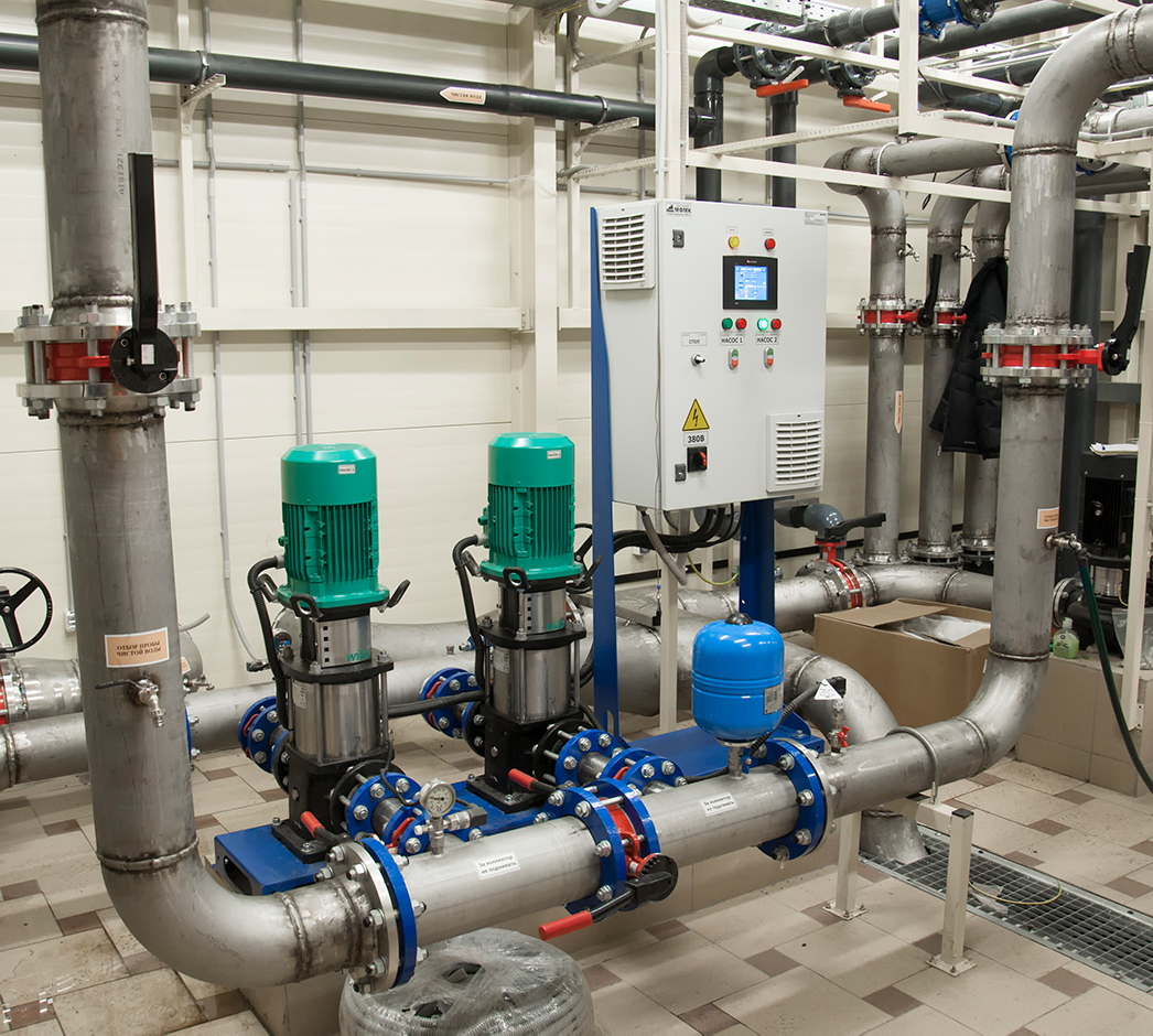 Комплексная установка ВПУ производительностью 50 м3/ч с функцией пропорционального подмеса оборотной воды, состоящая из блока предварительной очистки и блока обратного осмоса (предназначенного для удаления повышенной концентрации ионов лития). Система управления интегрирована с общей САУ АО Мосводоканал.