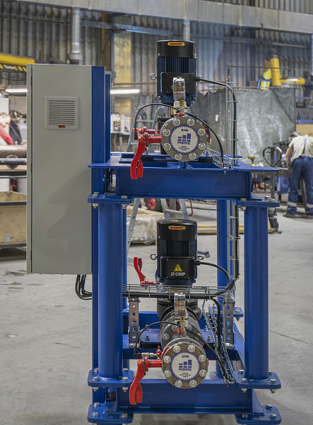 1. Насосная установка моноблочного исполнения УХЛ1 для монтажа на открытой площадке со шкафом управления на базе свободно программируемого контроллера для циркуляции 45% водного раствора этиленгликоля. Кол-во насосов: 1 рабочий, 1 резервный.