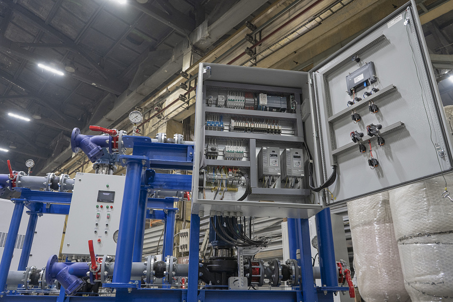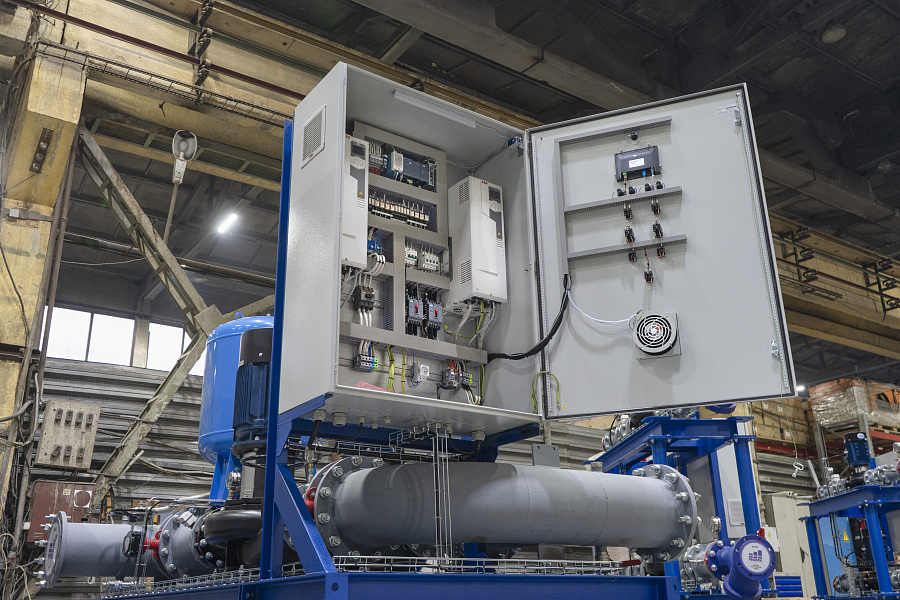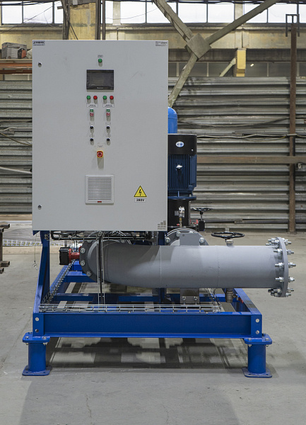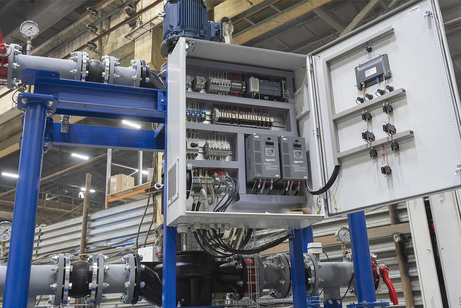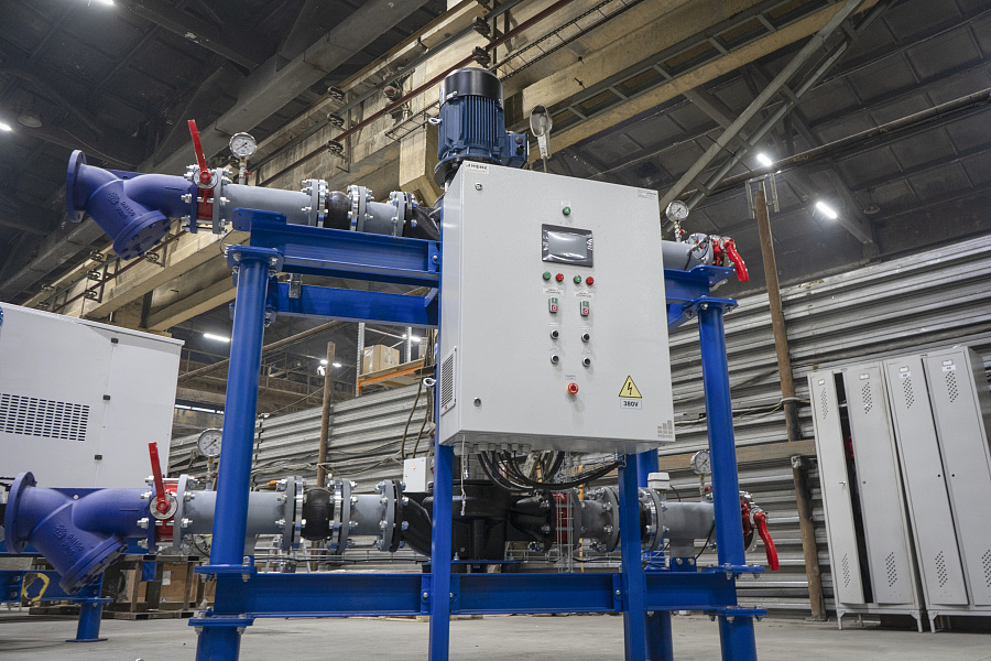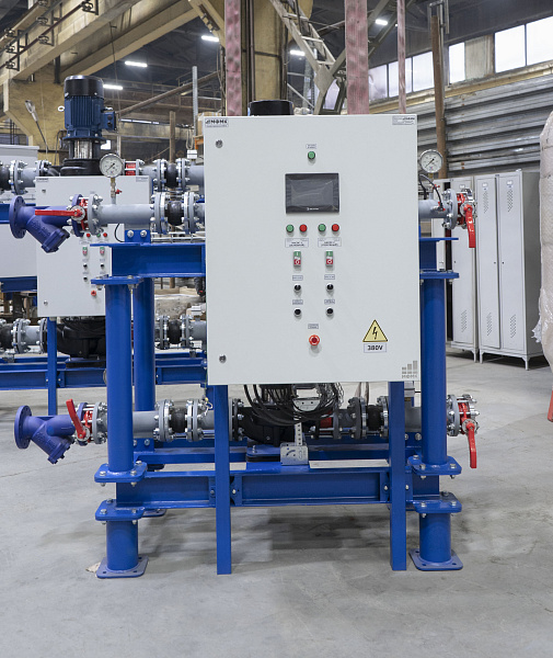 2. Насосная установка моноблочного исполнения УХЛ4 для монтажа в помещении со шкафом управления на базе свободно программируемого контроллера для циркуляции воды. Кол-во насосов: 1 рабочий, 1 резервный.