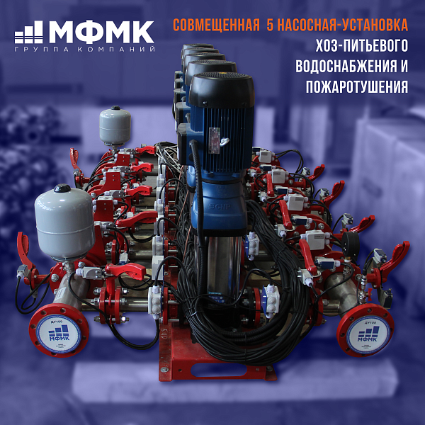 - Совмещенная 5-насосная установка хоз-питьевого водоснабжения и внутреннего пожаротушения;