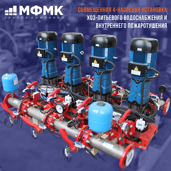 - Совмещенная 4-насосная установка хоз-питьевого водоснабжения и внутреннего пожаротушения;