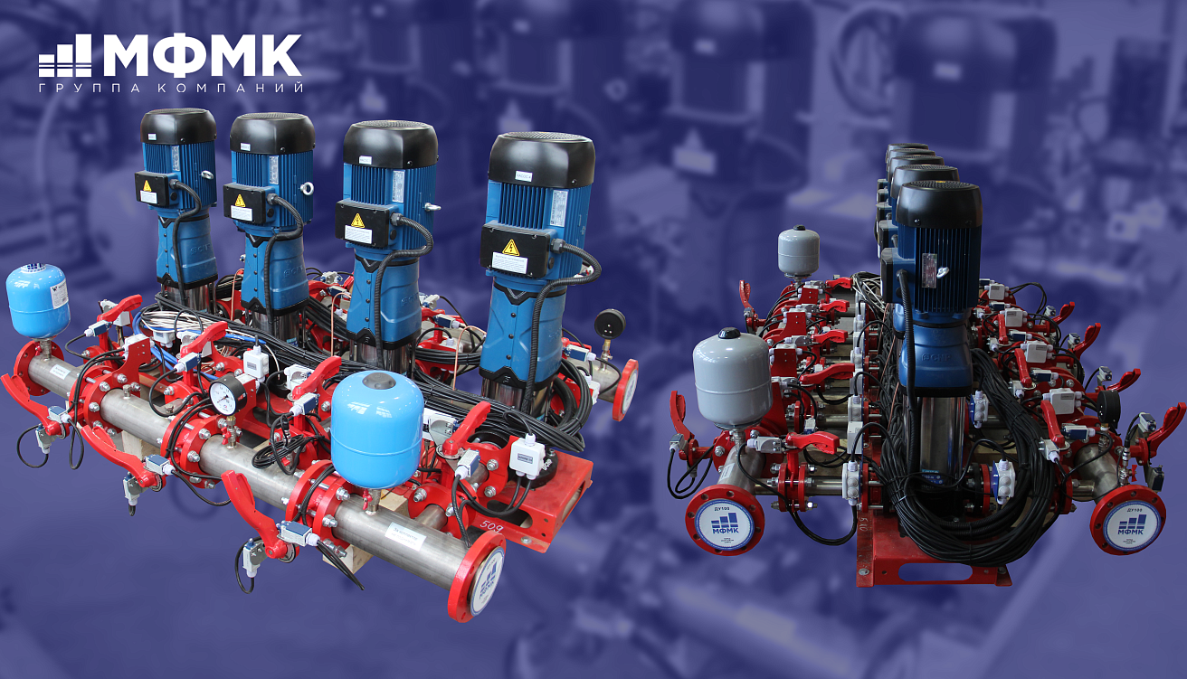 - Совмещенная 4-насосная установка хоз-питьевого водоснабжения и внутреннего пожаротушения;