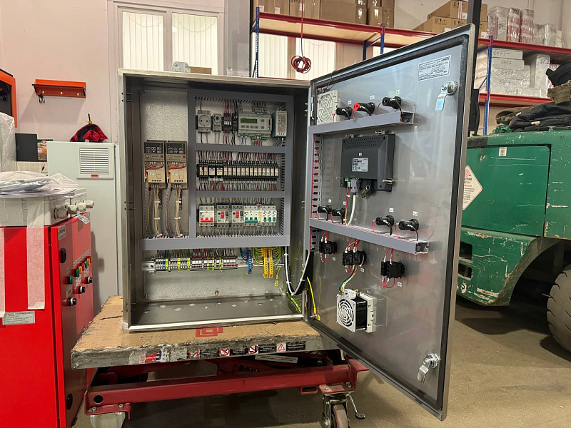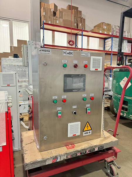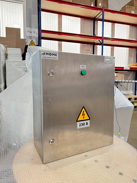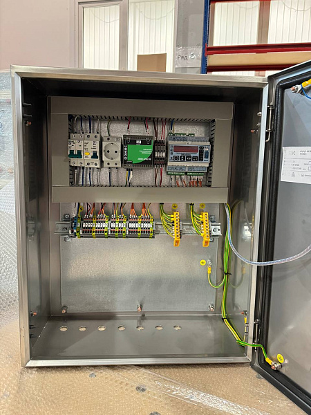 - По техническим требованиям, шкаф управления установкой и щит учёта тепла выполнены из нержавеющей стали с соблюдением необходимых характеристик пыле- и влагозащиты для их размещения вблизи установки.