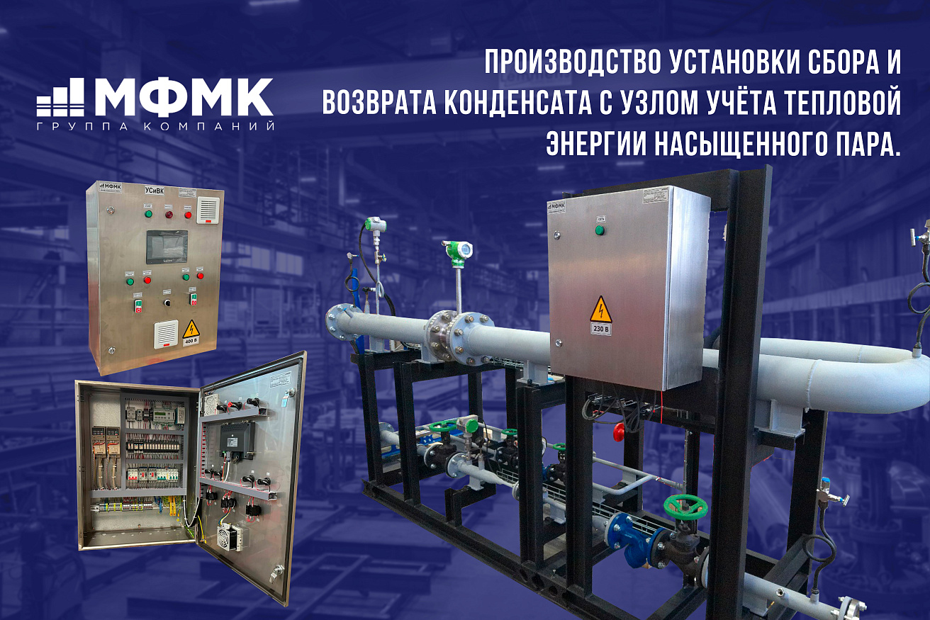 Производство установки сбора и возврата конденсата с узлом учёта тепловой энергии насыщенного пара.